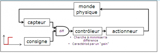 L’action effectuée par le robot sur le monde physique pour respecter la consigne est caractérisée par un « gain », c’est-à-dire une mesure de la réactivité du système.